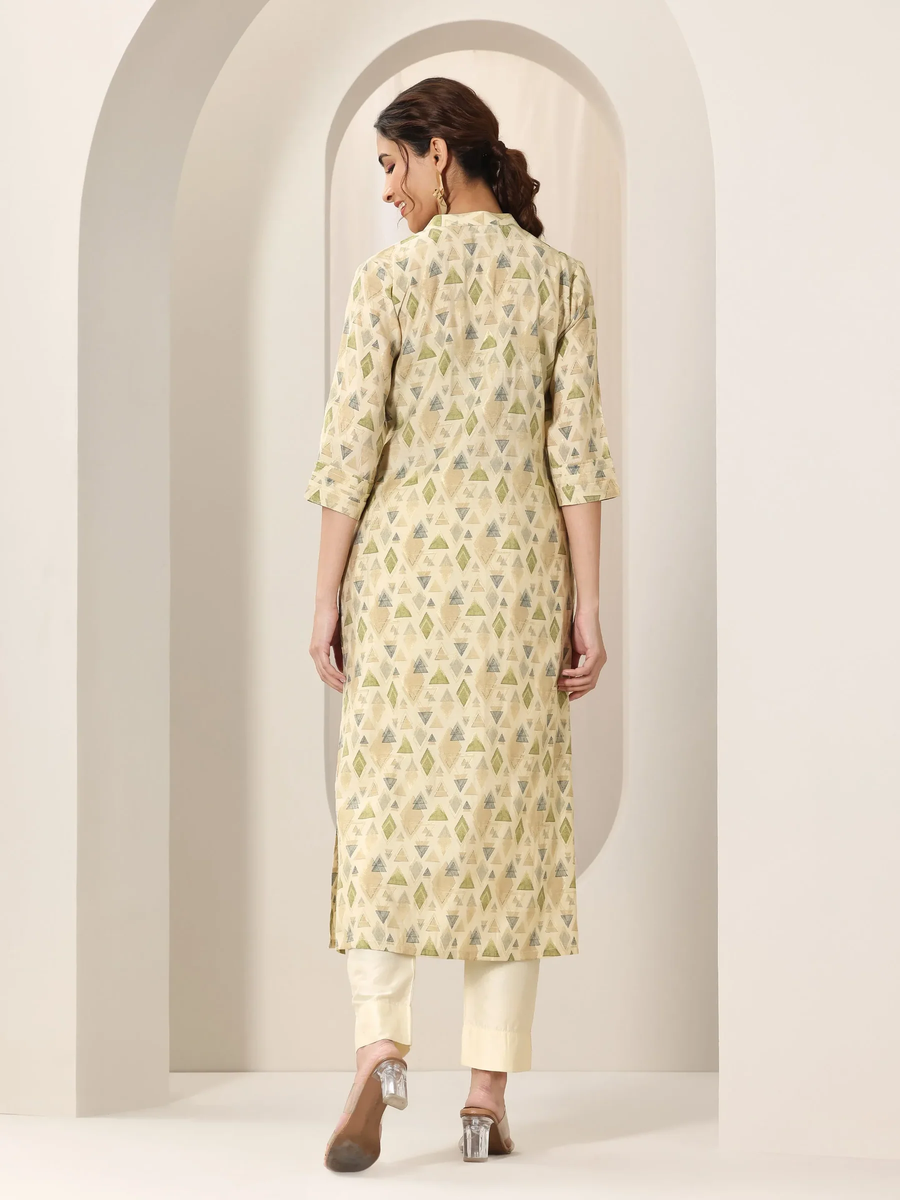- Product Name: Beige Printed Silk Blend Straight Kurta
