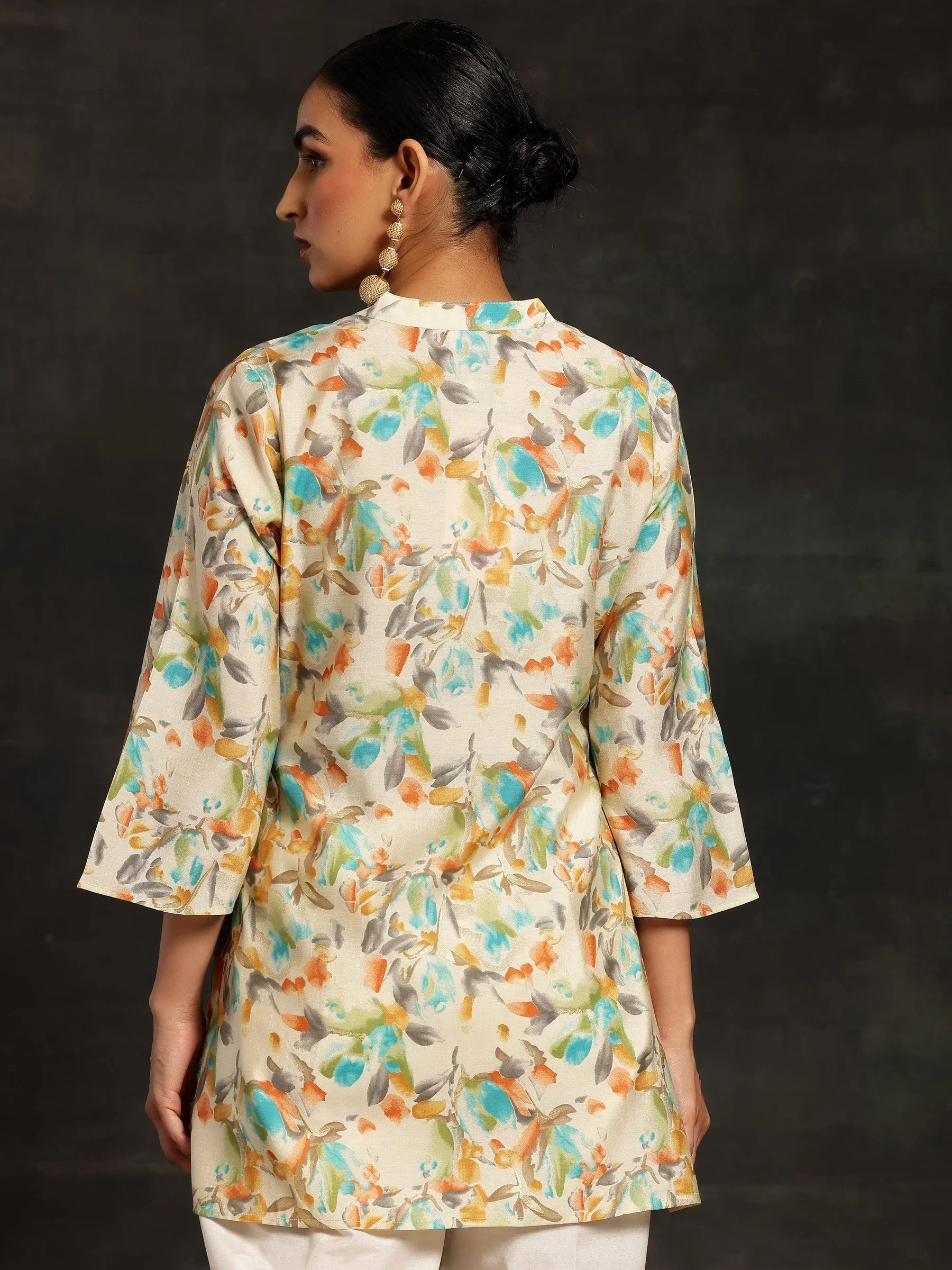 Note: The color of Beige Printed Silk Blend Straight Kurtis may slightly vary due to lighting, photography, or screen settings.
