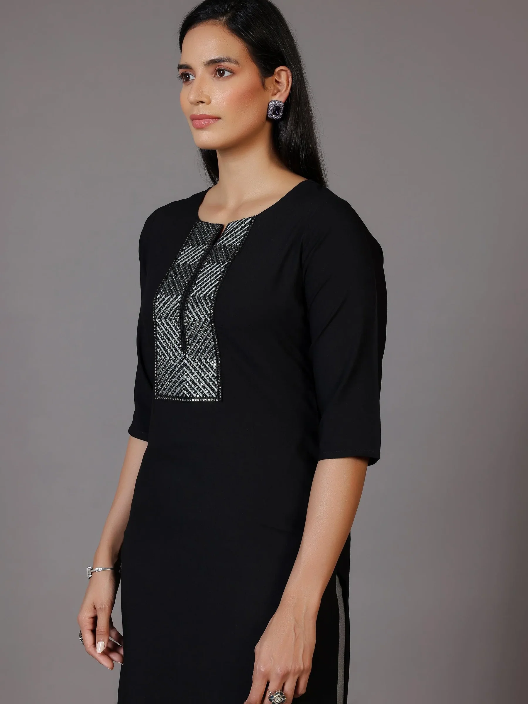 Black Embellished Rayon Straight Kurta – Elegant & Comfortable Kurta Set