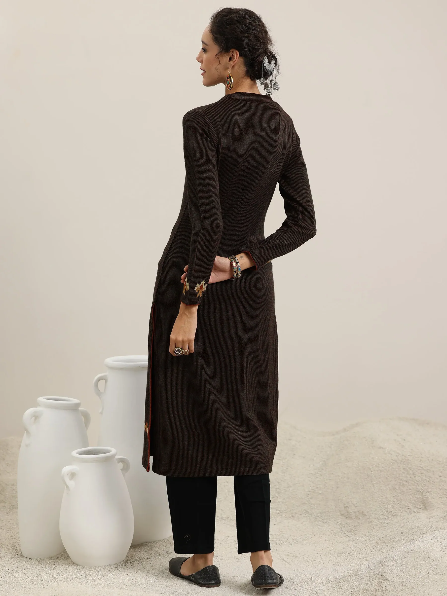 ✨ Key Features of Black Embroidered Wool Straight Kurta: