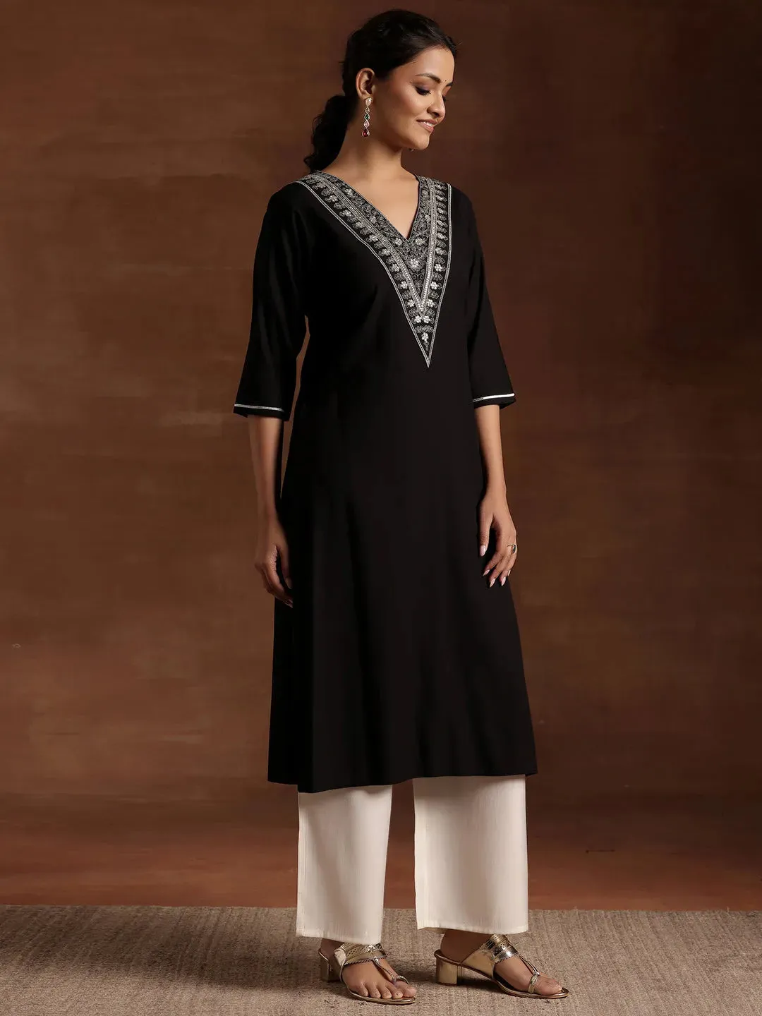 • Product Name: Black Yoke Design Rayon A-Line Kurta