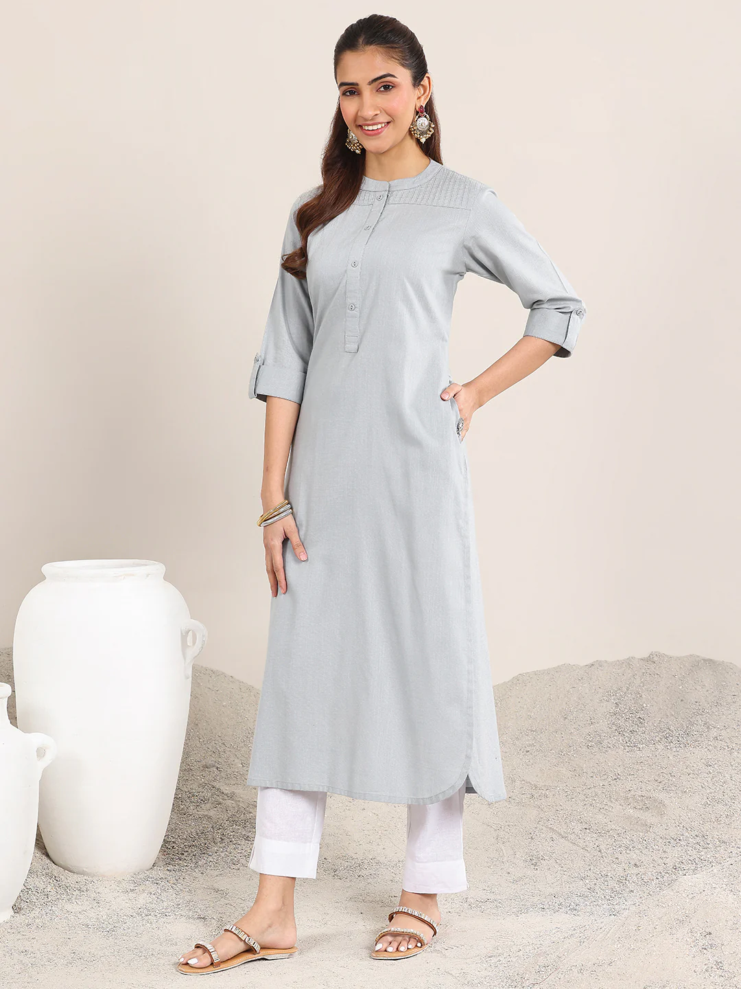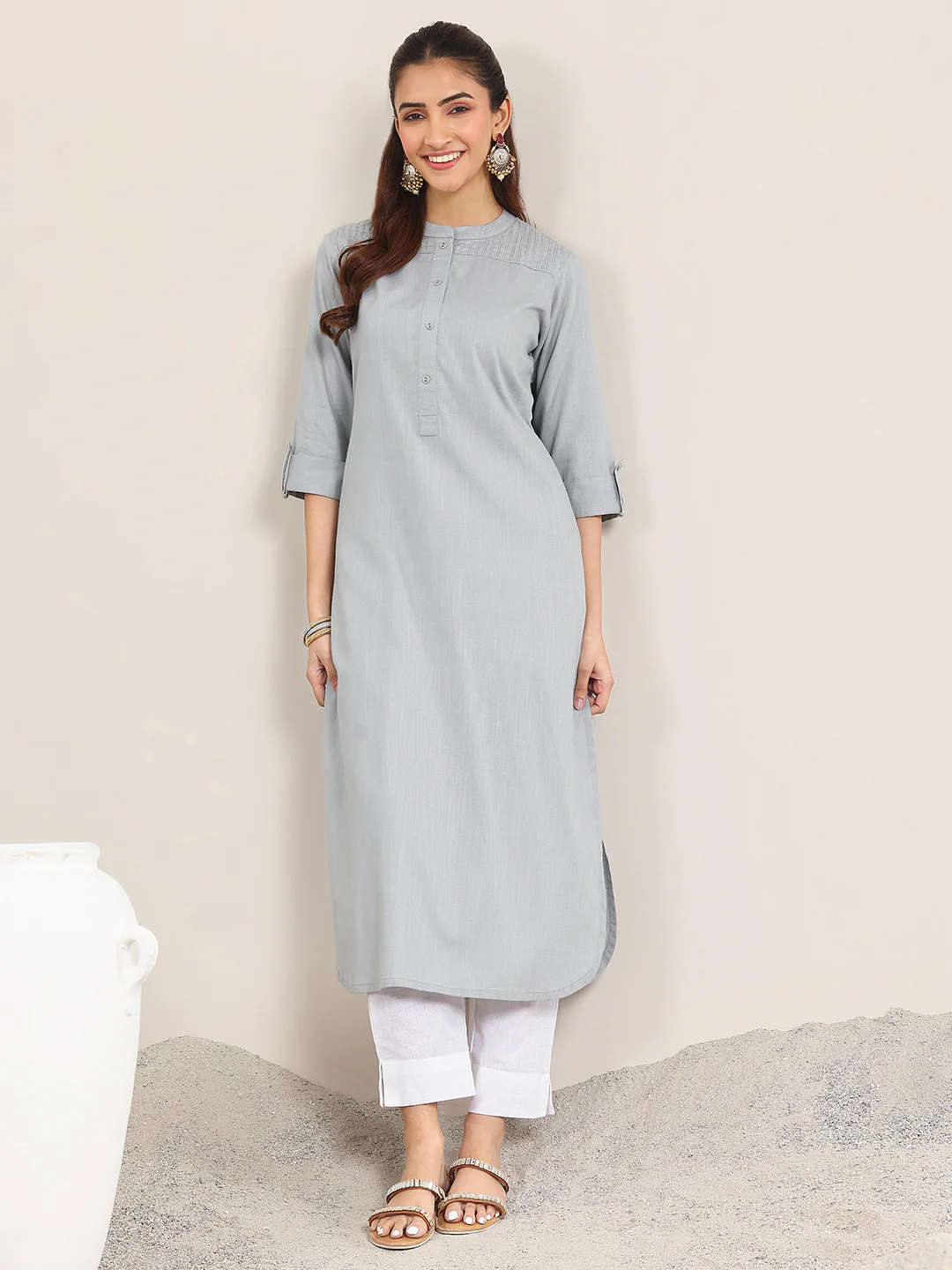 When you wear Blue Solid Cotton Blend Straight Kurta, you carry a look that feels graceful, fashionable, and effortlessly elegant.