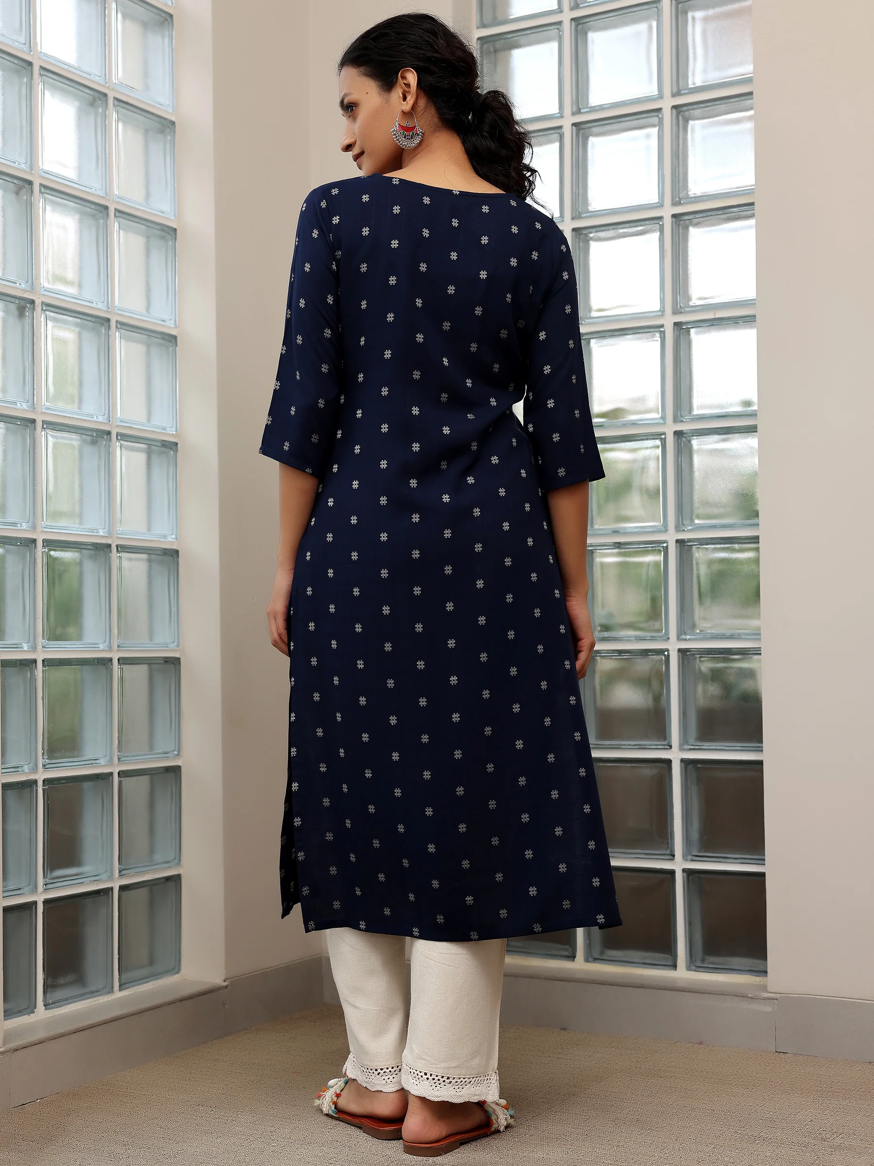 Note: The color of Blue Woven Design Cotton Straight Kurtas may slightly vary due to lighting, photography, or screen settings.