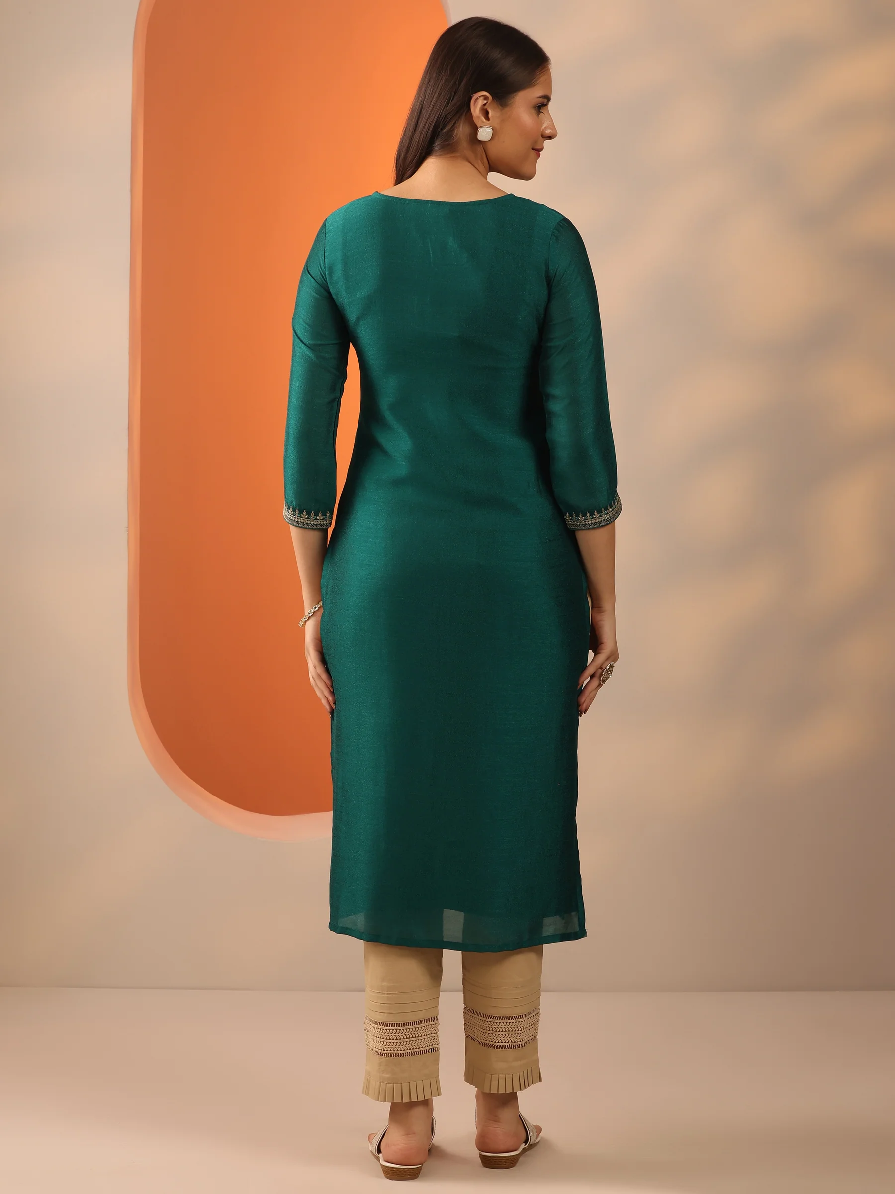 • Product Name: Green Embroidered Silk Blend Straight Kurta
