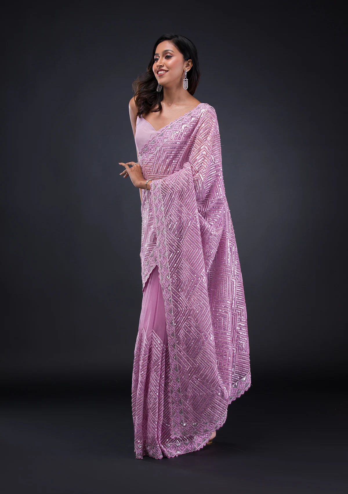 Lavender Threadwork Net Saree is designed to enhance your natural beauty while offering maximum comfort.