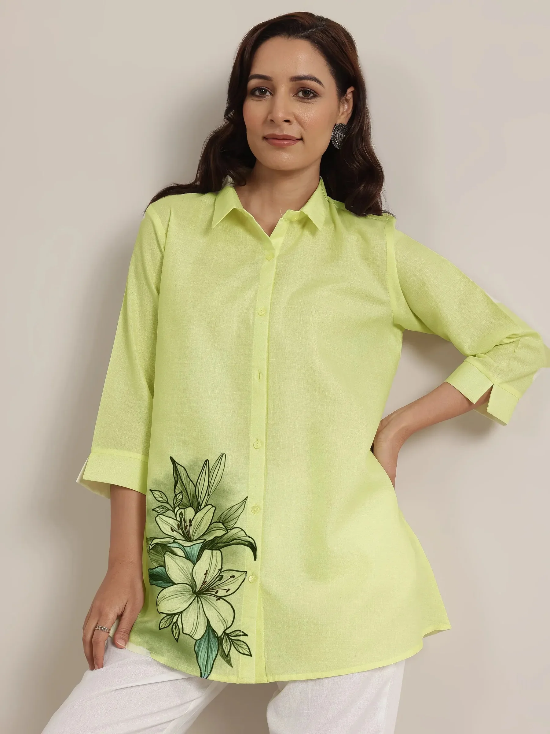 When you wear Lime Printed Cotton Blend Straight Short Kurti, you carry a look that feels graceful, fashionable, and effortlessly elegant.