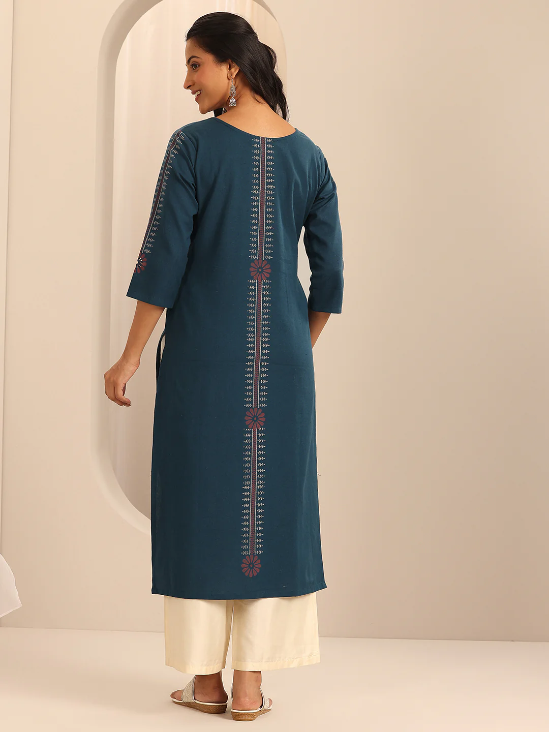 Navy Printed Cotton Blend Straight Kurta is designed for women who want comfort without compromising on style. The beautiful ethnic appeal of Navy Printed Cotton Blend Straight Kurta makes it a versatile outfit for multiple occasions.
