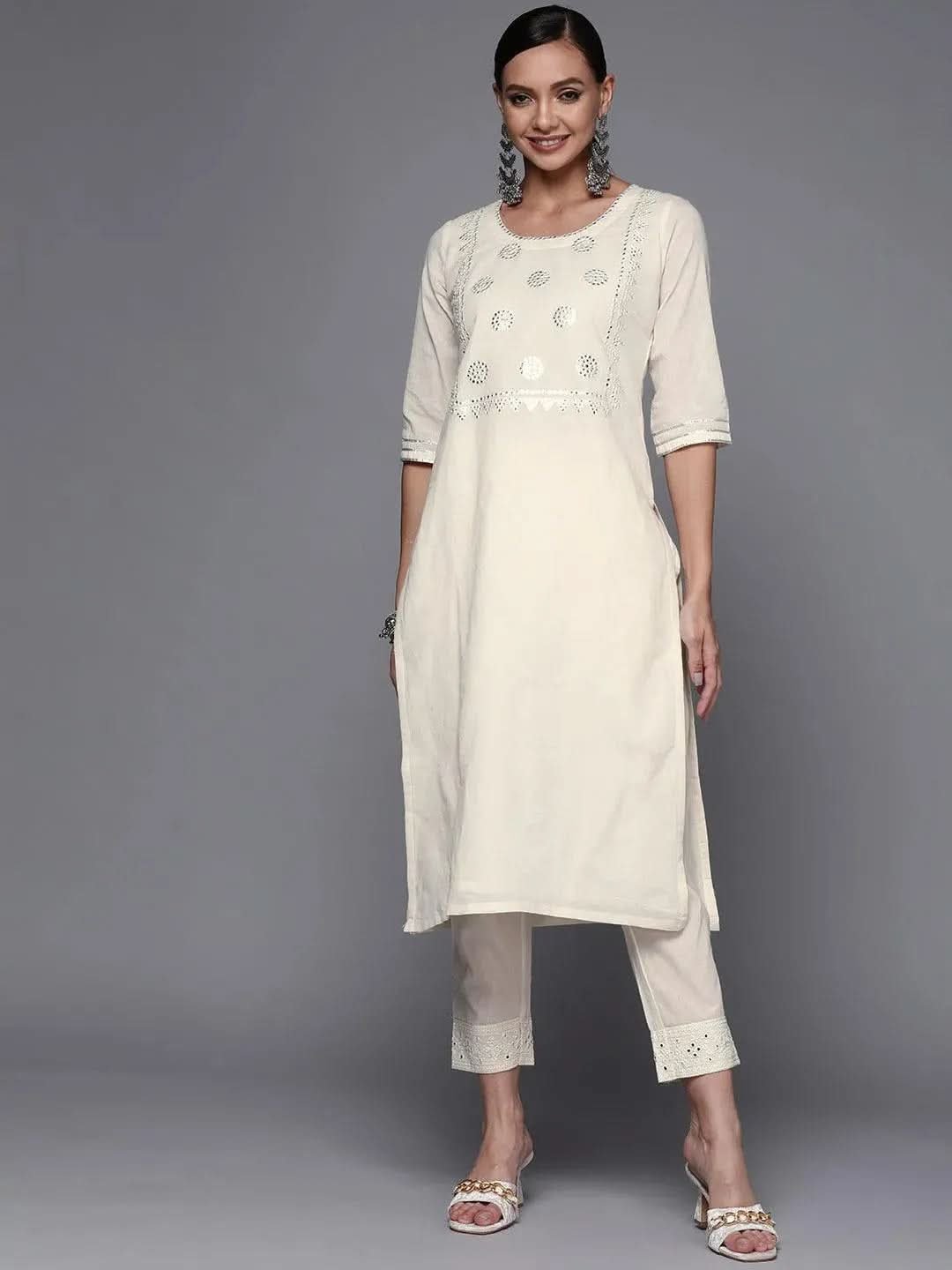 💖 Why Choose Off White Yoke Design Cotton Straight Kurta?