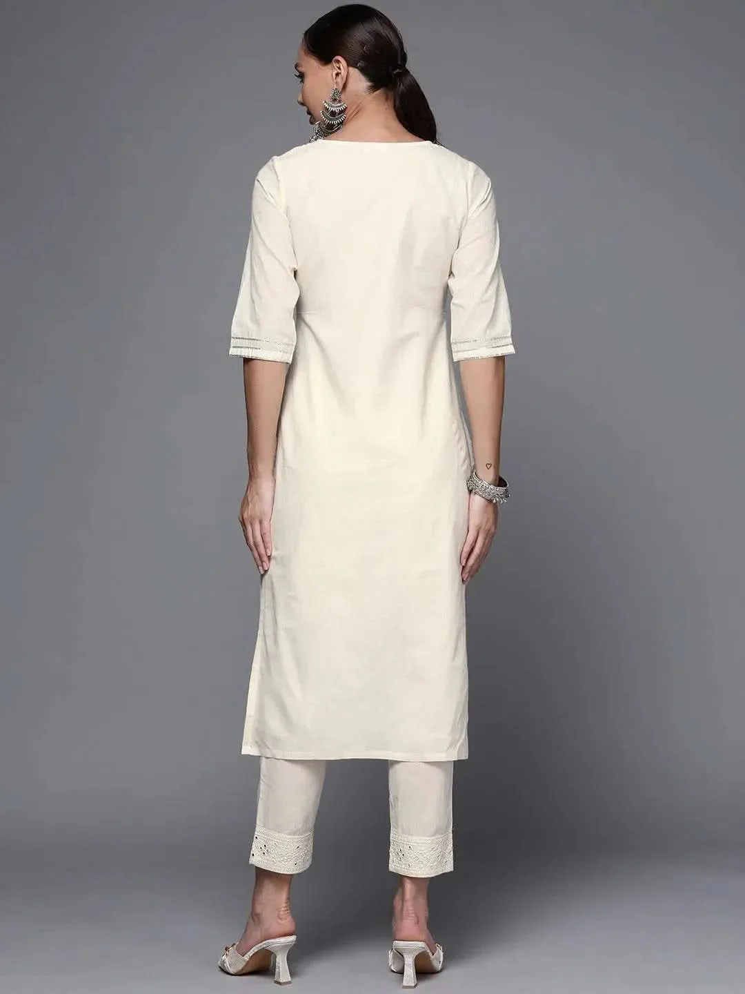 Note: The color of Off White Yoke Design Cotton Straight Kurta may slightly vary due to lighting, photography, or screen settings.
