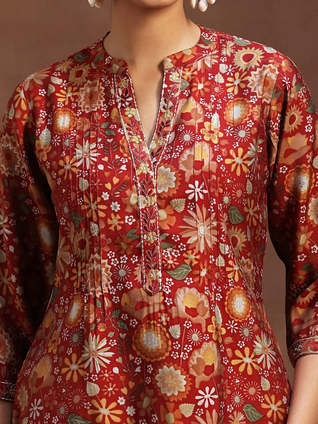 ✨ Key Features of Red Printed Silk Blend A-Line Kurti: