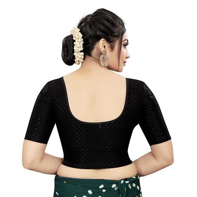 When you wear Round Neck Dobby Cotton Lycra Stretchable Elbow Sleeve Readymade Saree Blouse for Women Stylish (Free Size), you carry a confident, stylish, and effortless look wherever you go.