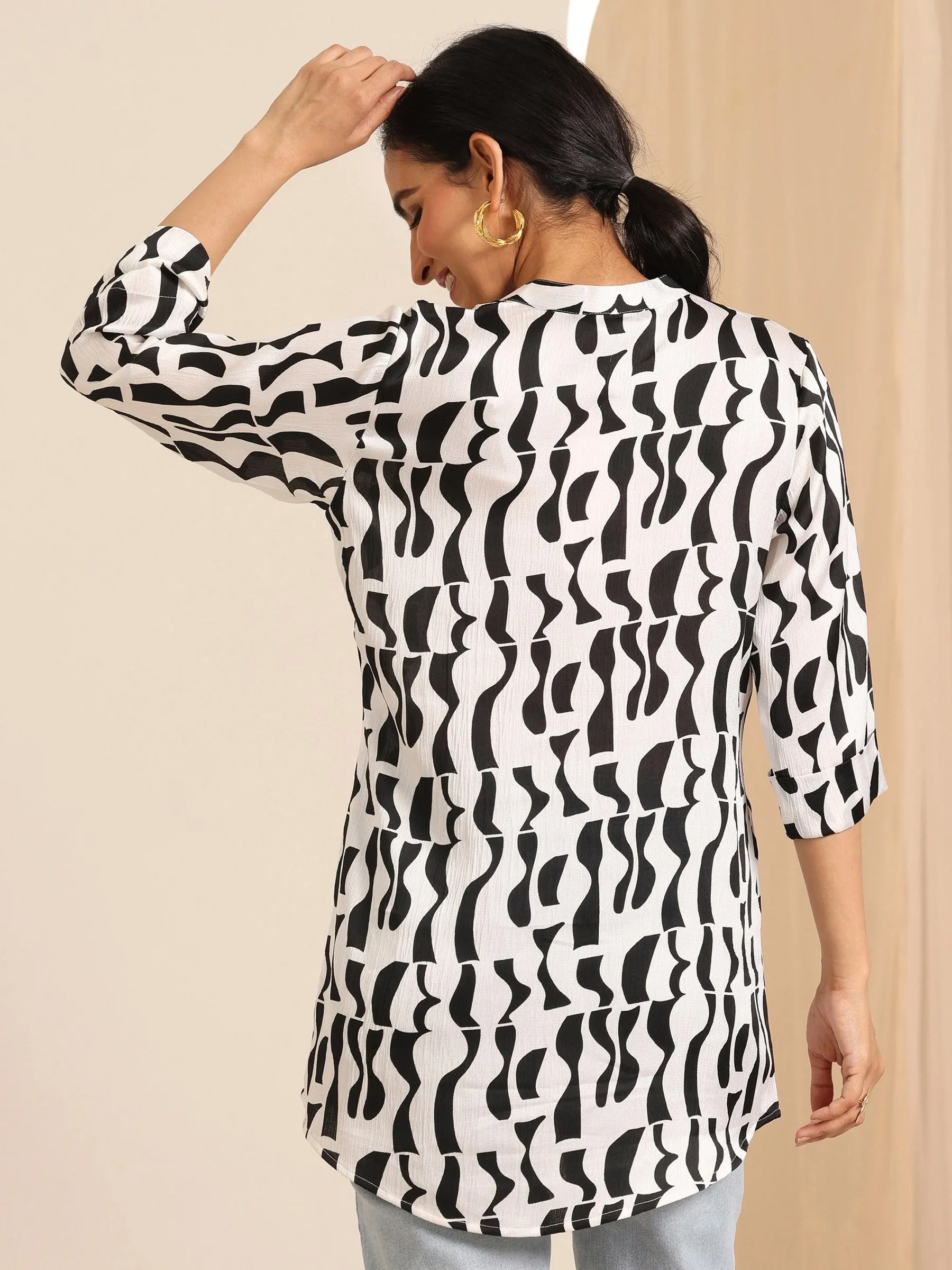 ✨ Key Features of White Printed Silk Blend Straight Tunic: