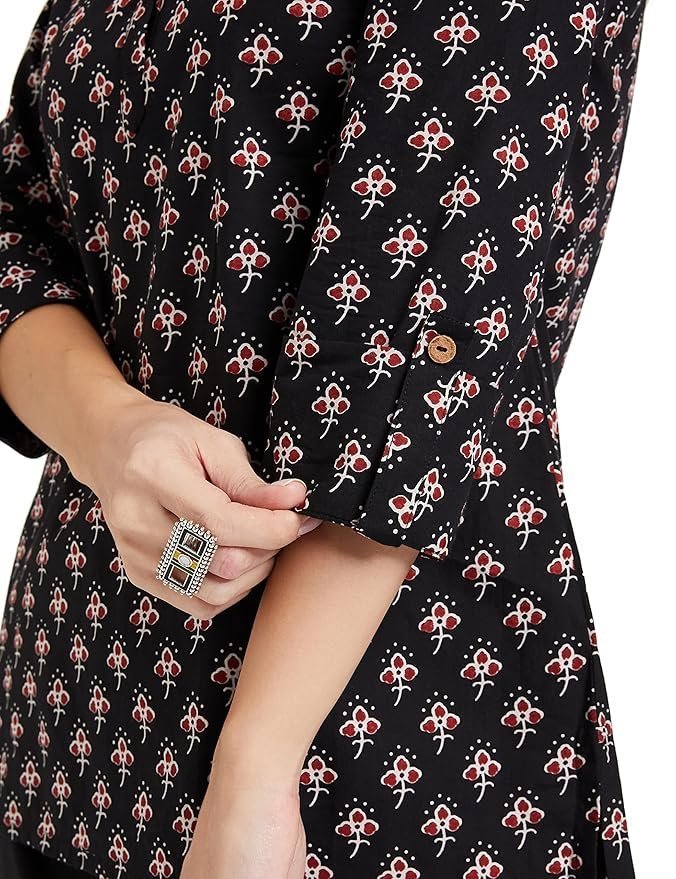 Note: The color of Women's Printed Regular Cotton Short Kurti may slightly vary due to lighting, photography, or screen settings.