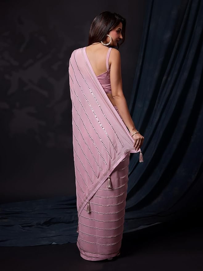 💖 Why Choose Women's Silk Sequins Embroidery Stripted Saree with Blouse Piece?